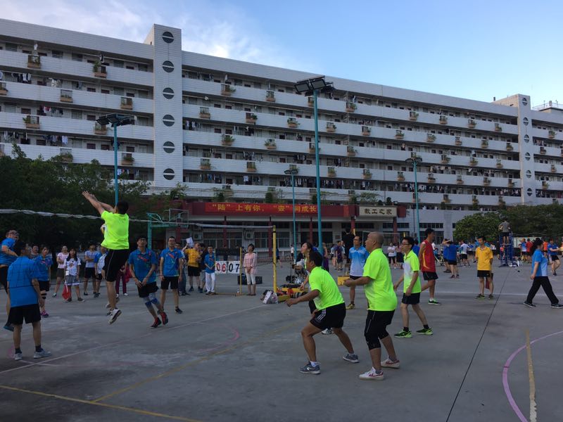 2017年6月5日下午6时的4号排球场,球场早已人声攒动,大家都在期待电商队与国际公司强队的这场比赛。
