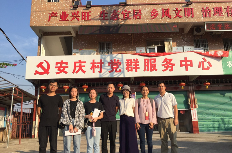 左四广东省文化和旅游厅驻村干部文捷敏科长,右一广东财经大学梁江川副教授,右二吴雅骊老师,右三潘玲老师,安庆村"景区规划和管理"、"民俗学"移动课堂合照