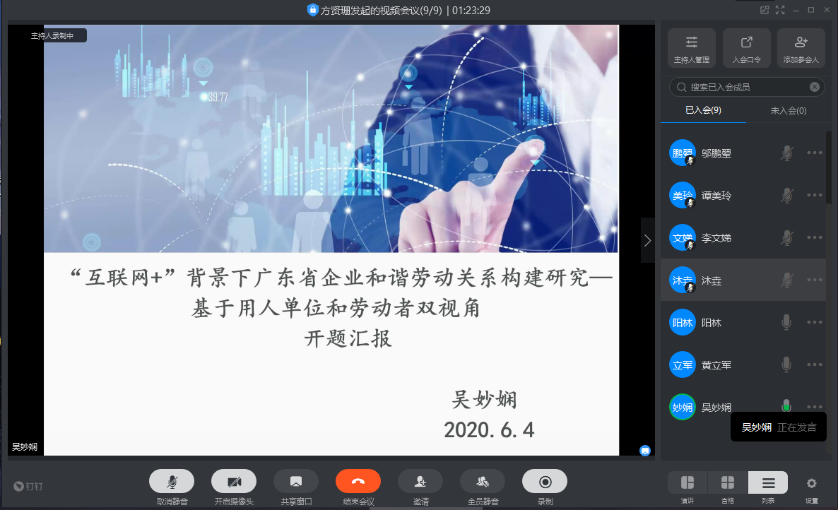会上,各位项目负责人分别就项目研究意义、研究目标、研究内容、研究方法、成果经费等方面进行了汇报和答辩。专家组认真听取了项目负责人的开题汇报,仔细审阅了开题报告,并围绕项目的创新特色、研究内容、预期成效,不足之处等问题提出了具有建设性和改进性的意见。黄立军提出,李萌萌组的《基于开放式创新的粤港澳大湾区内企业创新路径研究》和邬鹏翚组的《项目驱动型教学在网站设计课程中的应用》可以在校级项目的基础上进一步申报省市级课题。最后,专家组一致同意这5项校级科研项目通过开题,希望各项目进一步优化研究方案,保证项目研究质量,为项目正常开展和日后的顺利结项打下基础。