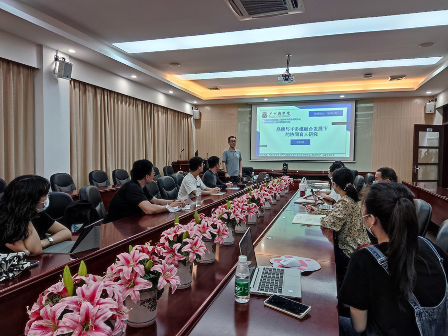 第一位主讲人为市场营销教研室的张蔚鴒博士,报告主题是“品牌与IP多维融合发展下的协同育人研究”,这与他主持的教改课题“新文科背景下IP产业链复合型人才的多方协同育人模式研究”有关,也是围绕该课题主题的研讨活动。第二位主讲人为物流教研室的张小明博士,报告主题为“智慧城市系列”的第二讲——智慧城市智慧产城社区的运营之道:以天安云谷为例。