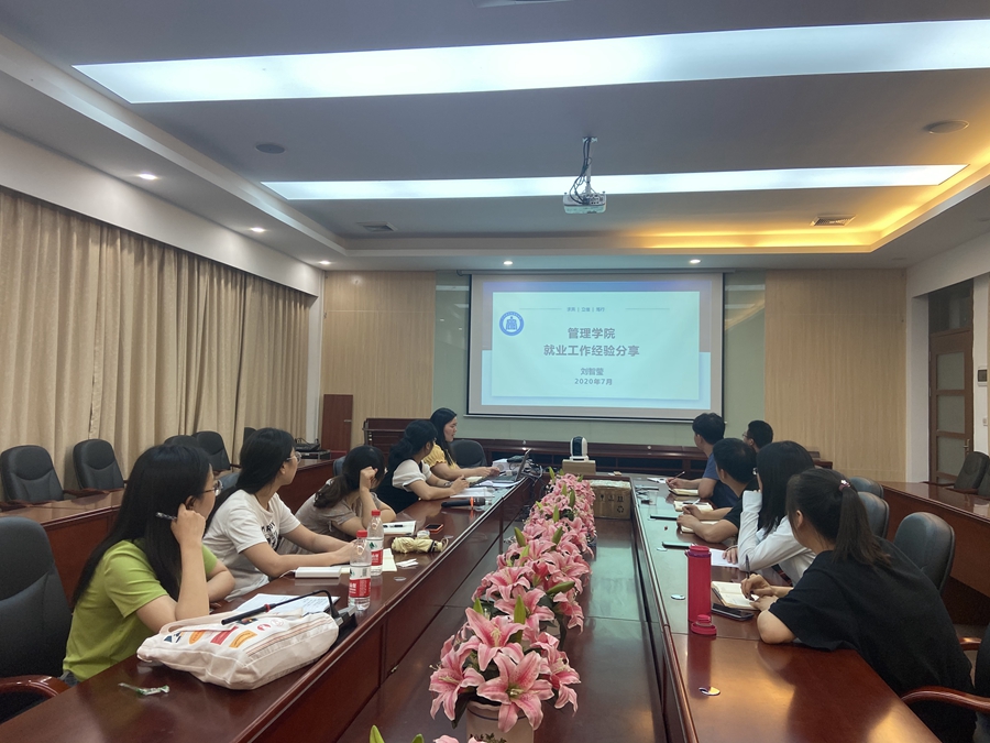 16级辅导员刘智莹、徐佳佳针对就业工作进行了经验分享,刘智莹对毕业班一年的工作进行了详细的梳理,并结合每个月的工作重点、难点分享了自身的工作做法,强调了注意事项,并总结了四点经验:一是与员工建立深厚的感情,是工作顺利开展的前提;二是提前了解员工的就业意愿及职业规划是就业开展的重点;三是引导树立正确的就业观念,是推动就业工作的关键;四是关心、专心、用心、爱心、是就业工作顺利开展的保障。徐佳佳则对如何做好辅导员工作进行了分享,通过“紧密联系助感情、四级网格提时效、五级联系促学业、加减乘除促就业”四部分,详细介绍了自己就业工作的经验和方法。
