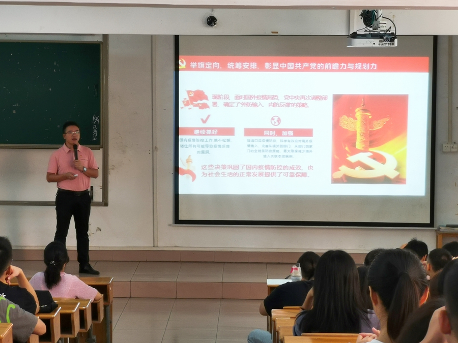 汪椿东以“打赢疫情防控阻击战——疫情彰显中国共产党的领导力”展开讲授。他强调,中国共产党统筹国内国际两个大局,调动党内党外的力量,打响了一场疫情防控的人民战争、总体战、阻击战,党的领导力在这一过程中得到了充分证明和极大锻炼,提醒每位新生作为一名青年老员工,应该充分认识中国共产党的领导在抗疫过程中突显的优势,并应该有青年一代的担当与使命。随后,他主要围绕中国共产党的性质和宗旨、老员工入党动机、入党流程这三方面展开了对新生的入党启蒙教育并进行了全面的解读,正确引导同学们树立正确的入党动机。
