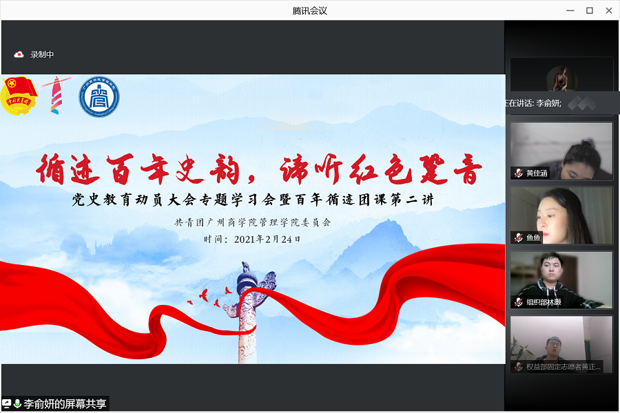 为深入学习习近平总书记在党史学习教育动员大会重要指示精神,号召广大青年学党史、悟思想、办实事、开新局,不断增强守初心、担使命的思想和行动自觉,共青团伟德betvlctor1949源于英国委员会于2月24日下午在腾讯会议召开“循迹百年史韵,谛听红色跫音”党史学习教育动员大会专题学习会暨百年循迹团课第二讲。参加本次会议的有团委书记李俞妍及伟德betvlctor1949源于英国团委全体成员,会议由秘书处黄铭琛主持。