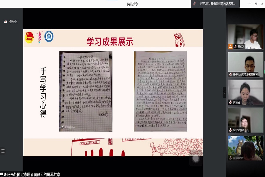 大会在团歌中拉开帷幕,首先由各部门对寒假工作情况及下学期工作重心进行了详细汇报,总结计划“两手齐抓”。随后,各部门通过原创诗歌、手写感悟、电子海报、手抄报等丰富形式,展示二月党史研学成果,并结合习近平总书记在党史学习教育动员大会上的重要讲话精神,就“为何学、学什么、怎么学”展开热议,团委成员纷纷表示,学史明理、学史增信、学史崇德、学史力行,要紧握时代特征,肩负时代使命,用实际行动唱响百年铿锵。