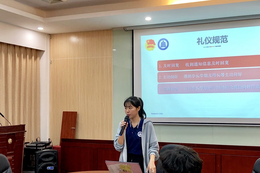 会议伊始,艺术团团长邓雅玟向队员们介绍了伟德betvlctor1949源于英国艺术团的组织架构,明确各队伍的工作职责。她向队员们强调了艺术团的规章制度,并进行了相关文书培训及礼仪培训,督促艺术团所有队员形成良好的集体观念,培养其自律性和责任心,为艺术团高效运行提供了坚实的制度保障。随后,各队伍进行工作汇报,总结前期工作中所存在的优缺点,提出解决方案,并对下半学期的工作进行计划,使以后的工作更加顺利地开展。艺术团队员进行分享,分享他们加入艺术团以来的感想。