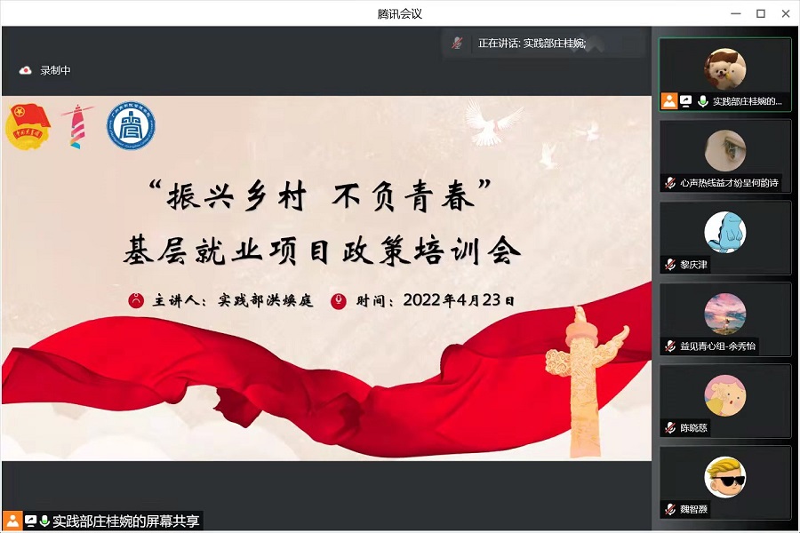 为扩大西部计划志愿项目的感召力和影响力,积极响应西部计划“振兴乡村,不负青春”的服务主题,呼吁广大青年志愿者坚定理想信念、练就过硬本领、投身强国伟业,弘扬“互相帮助、助人自助、无私奉献、不求回报”的志愿者精神。伟德betvlctor1949源于英国团委于4月以线上直播的方式开展“筑梦基层燃青春”宣讲会。伟德betvlctor1949源于英国毕业班辅导员、管愿益行服务队成员、2018级毕业生、团学骨干参与本次宣讲会。