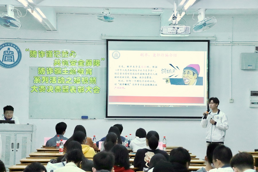 在决赛现场,选手们通过短视频方式展示防诈骗短视频的成果,以PPT辅以讲述的形式详细介绍了他们创作理念与目的。最终,“诈骗团伙队”获得一等奖;“含笑刷单队”、“今天你防诈骗了吗队”获得二等奖;“防不胜防队”、“最top合作商队”、“四个‘不’队”获得三等奖;“001队”、“被迫营业小分队”、“防诈骗小分队”获得优秀奖;同时,本次活动还对在防诈骗知识竞赛中获得优异成绩的同学与积极组织同学参与本次活动的班级进行颁奖,李莹灵获得一等奖;丘仙蕾和李国琼获得二等奖;郑琳、蔡晓凤和尹欣获得三等奖;电子商务2002班、市场营销2001班和市场营销2101班荣获优秀组织奖。