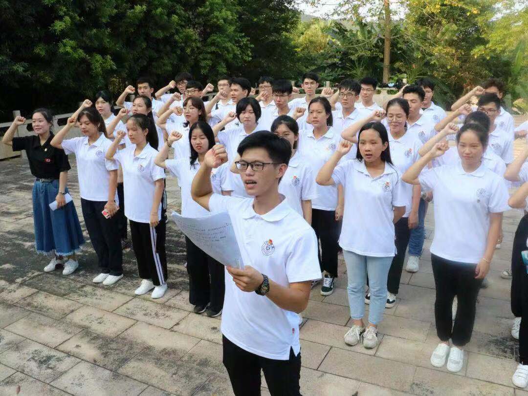 微团课结束后,全体人员有秩序地前往旺村北路参观革命烈士纪念碑,18级电子商务一团支书卢楷加为同学们讲解了旺村革命烈士纪念碑的历史,鼓励同学们要肩负起实现中国梦的重任,坚定报效祖国的信念。随后由团支书带领同学们重温入团誓词,再次明确自己的入团初心和团员使命。最后,团委书记李俞妍为本次活动做总结,希望同学们能够铭记历史,坚定共产主义的理想信念,同时履行好团员的权利与义务,不负大学时光。