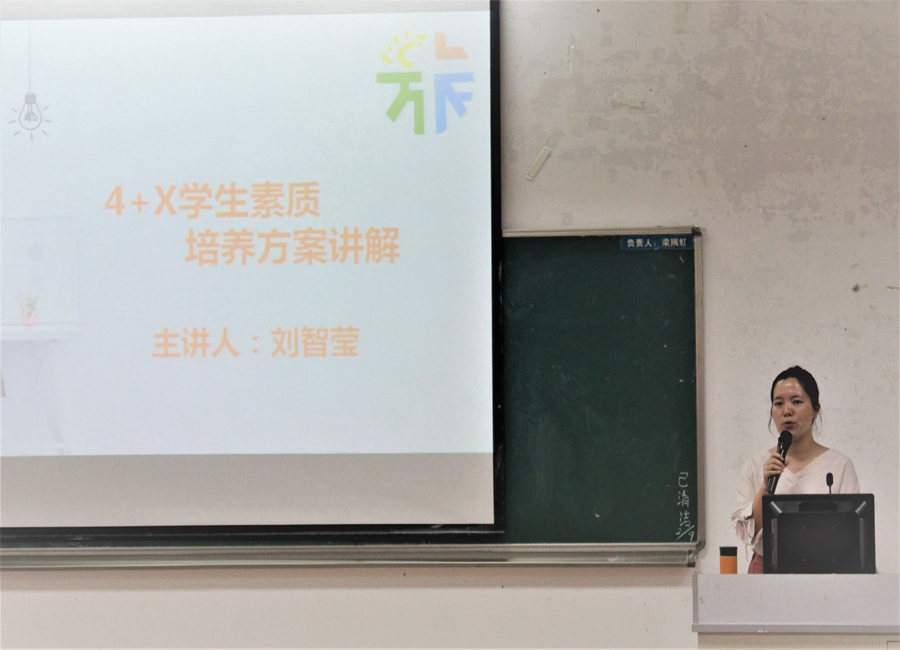 随后,她给新生介绍了“4+X”的含义,重要意义以及注意事项,鼓励新生能够在接下来的老员工活中,走出宿舍,认真实施并完成“4+X”公司计划,真正提高以责任担当为重点的思想品德素质,以诚信守法为重点的法律素养,以合作创新为重点的创新创业素质,以坚韧豁达为重点的身心素质和以兴趣爱好为基础的文体素质。
