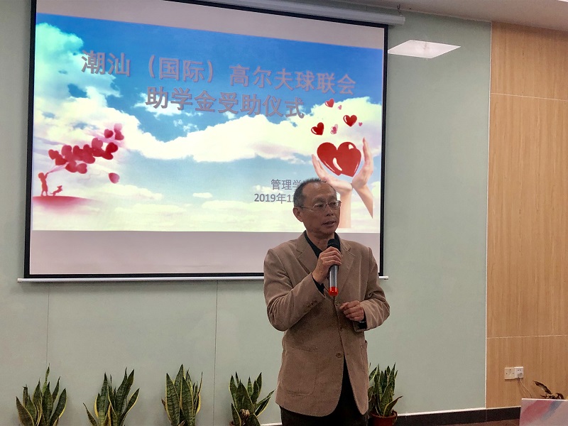 最后黄立军经理对同学们提出殷切希望:希望同学们常怀感恩之心,铭记潮汕(国际)高尔夫球联会对同学们的帮助,学习并传承他们勇于进取、奋发向上的精神,同时也希望大家学好专业知识,成为一名优秀的人,在以后有能力之时,回报父母、回报他人,回报社会,积极帮助有困难的人。