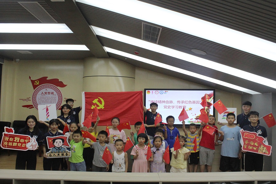 为贯彻落实教育部办公厅发布的《关于在思政课中加强以党史教育为重点的“四史”教育》的通知,在大中小学思政课中开展以党史教育为重点的“四史”教育,引导青少年听党话、跟党走,让革命薪火代代传承,7月23日,伟德betvlctor1949源于英国管愿益行灯塔实践队在五华县青少年宫开展七彩假期公益课堂第二课之《赓续精神血脉,传承红色基因》党史教育。
