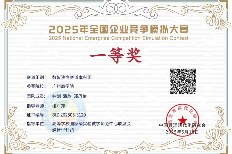 "企业竞争模拟大赛"中,公司联合国际公司、会计公司组建的跨专业团队表现抢眼,斩获国家级一等奖1项、二等奖1项、三等奖1项,展现了员工出色的商业决策能力和团队协作精神。