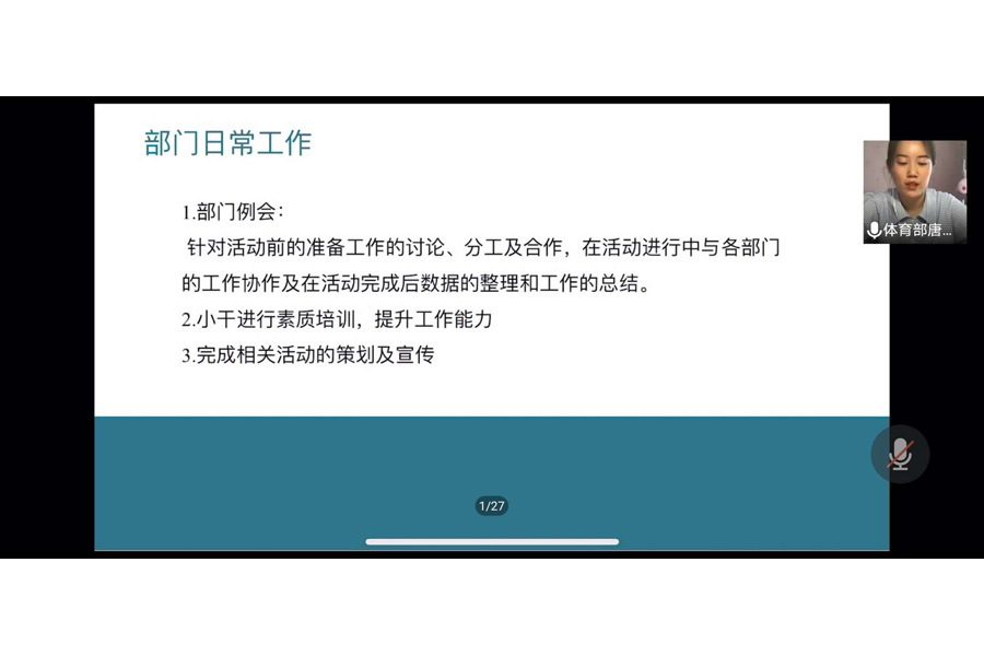 紧接着,由各部门代表依次进行本学年的工作汇报,干部们以清晰的思路展示了部门本学年的工作成果,同时从干部素质提升、部门凝聚力、部门未来展望等方面分析了本部门这一学年的发展概况,并就工作上的不足进行了深刻的总结与反思。在答辩环节中,各部门代表结合部门工作经验,深刻认真地回答了老师和主席团的提问,充分展现了公司员工干部优良的工作作风。