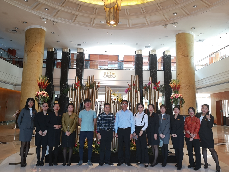为深化校企业合作,切实做好公司2015级员工实习工作,了解员工实习情况,11月13日,旅游公司常务副经理舒光美,党总支书记汪椿东,2015级辅导员蔡俊发,先后赴广州翡翠皇冠假日酒店、东方宾馆、佛山希尔顿酒店走访并看望实习员工。