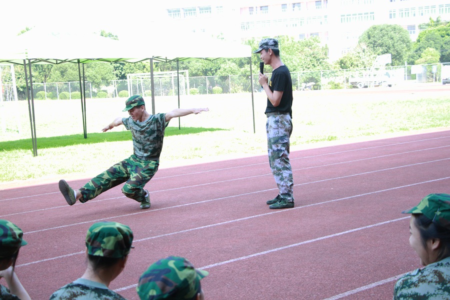 烈日炎炎,新生们身着统一军装,在橡胶跑道上站得挺拔。如同往常,在教官的严格指导下,新生们腰杆挺直,手掌紧贴裤缝、不留缝隙、收腹挺胸、重心向前,虽然疲倦,却始终精神抖擞、意志坚强。