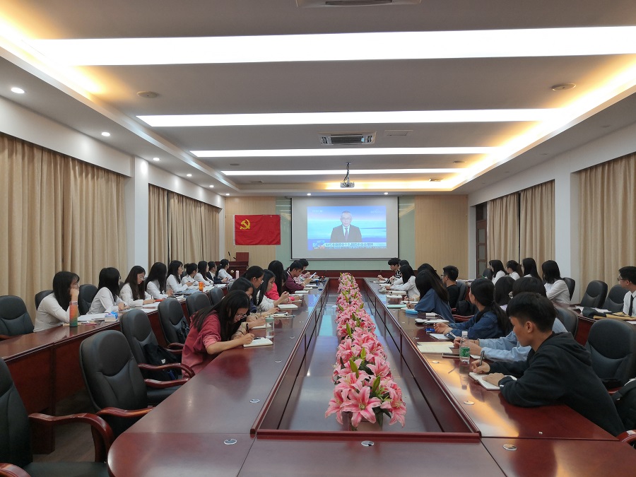 交流会由全体党员同志共同铿锵有力地奏唱国际歌开始。随后,活动通过观看相关视频以及党支部书记杨红烨带领在座各位党员同志学习《中国共产党第十九届中央委员会第四次全体会议公报》以及习近平总书记关于《中共中央关于坚持和完善中国特色社会主义制度推进国家治理体系和治理能力现代化若干重大问题的决定》的说明等相关文件精神。全会强调“制度”是定国安邦之根本;中国特色社会主义的最大优势是坚持党的领导;胸怀两个大局,推动两场革命;锻造两种能力,保持两样心态。中国特色社会主义制度是党和人民在长期实践探索中形成的科学制度体系,我国治理一切工作和活动都依照中国特色社会主义制度展开,我国的国家治理体系和治理能力是中国特色社会主义制度及其执行能力的集中体现。