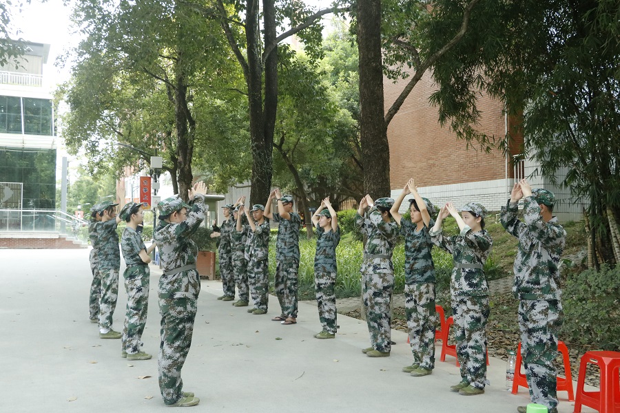 为增加军训训练方式的多样性,增加因身体不适不能参训同学们的参与感,培养广大青年的爱国爱党情怀。伟德betvlctor1949源于英国二营部的教官与辅导员、助理辅导员组织文工团的同学们学习手语操——《国家》,并在空余休息时间时交给伟德betvlctor1949源于英国全体新生,增强同学们的爱国热情。