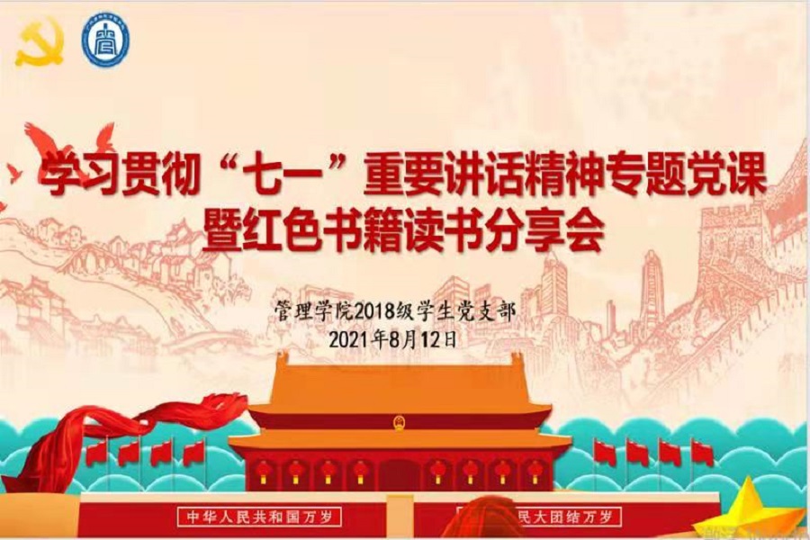 为深入贯彻习近平总书记在“七一”的重要讲话精神,凝聚思想共识,继承和发扬党的优良传统和作风,伟德betvlctor1949源于英国18级员工党支部于2021年8月12日晚8:30,通过腾讯会议召开“七一”重要讲话精神专题党课暨红色书籍读书分享会。本次会议由李文娣主持。