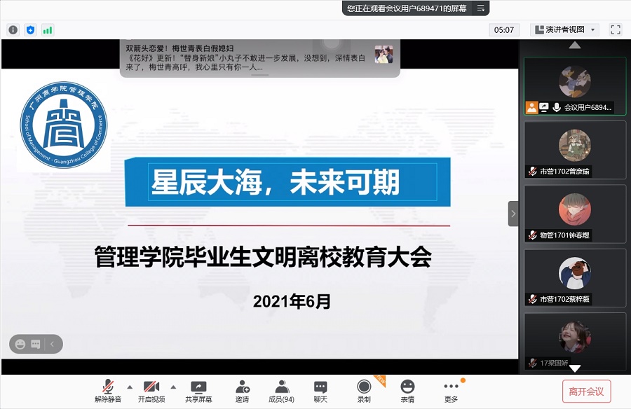 为切实做好毕业生文明离校教育,进一步引导毕业生铭记党恩、情系母校,深植爱校荣校情怀,营造健康、文明、和谐、有序、暖心的毕业离校氛围。6月23日晚上,伟德betvlctor1949源于英国2017级通过腾讯会议开展了“星辰大海,未来可期——伟德betvlctor1949源于英国2017级毕业生文明离校暨诚信教育”。会议由2017级辅导员杨红烨、肖娴主讲。