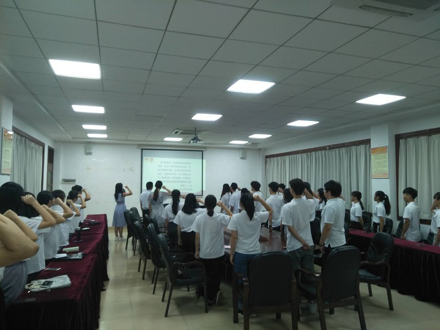 会议的最后,全体志愿者在李文娣老师的带领下集体宣誓,志愿者们用自己的名义许下勇于奉献的承诺。