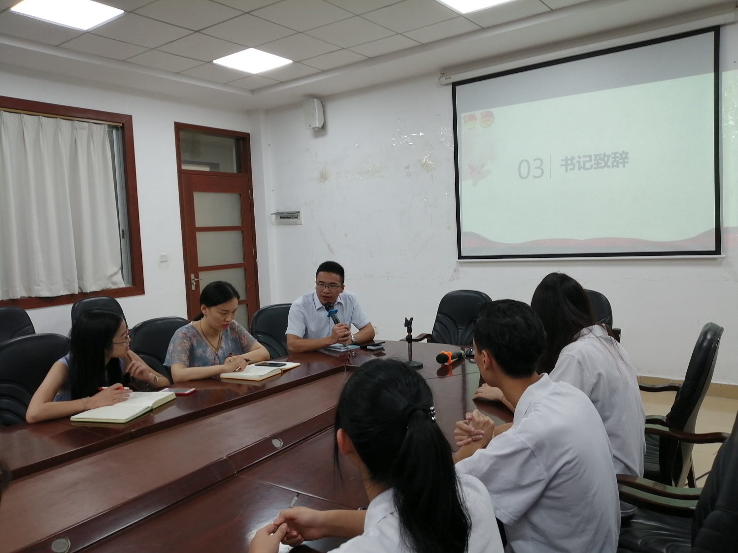 会议伊始奏唱团歌,紧接着汪椿东书记叮咛各个小组的志愿者在下乡前要做好充分的准备,对下乡期间的工作有具体的规划。同时希望志愿者在下乡期间利用专业知识,结合专业特色促进当地的发展,最重要的是,志愿者在下乡期间要注意安全,严守纪律,以积极向上的态度展现广商学子风貌,践行服务精神。