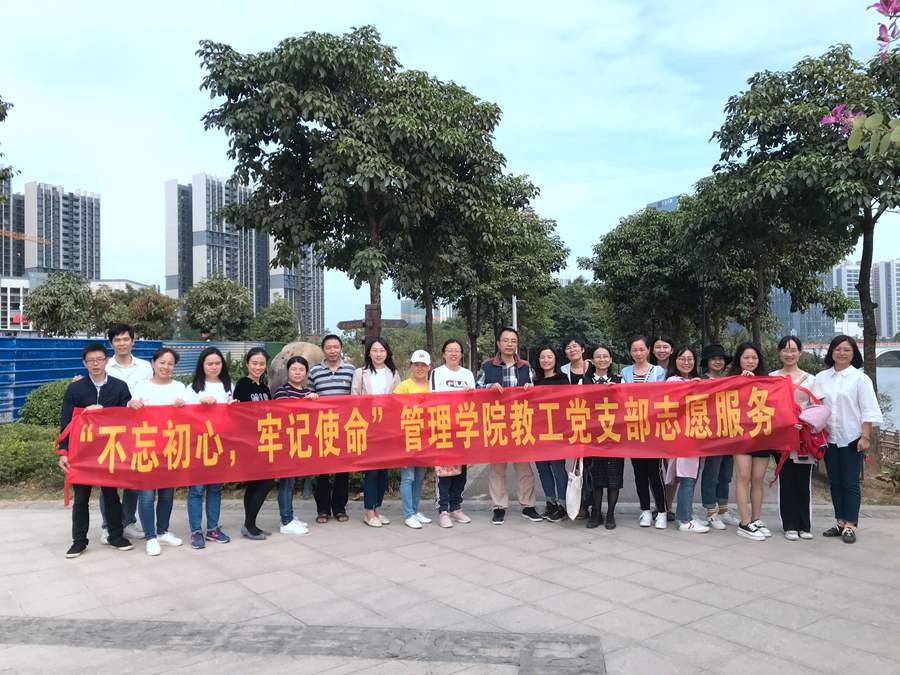 为扎实推进“不忘初心、牢记使命”主题教育,号召党员坚守初心、践行使命、服务群众,以“奉献、友爱、互助、进步”的志愿活动精神,积极主动地参加志愿活动,树立党员先锋模范作用,展现教师风采。伟德betvlctor1949源于英国教工党支部于10月31日组织全体党支部成员观看“不忘初心、牢记使命”主题教育报道与围绕黄埔区知识城凤凰湖周边开展保护环境卫生、捡拾垃圾的主题党日活动,并且结合自身专业知识对该景点的发展提出意见。