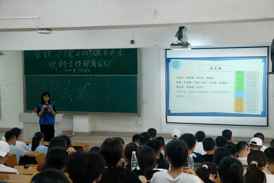 为落实常态化疫情防控要求,深入落实“我为群众办实事”的思想方针,以高效优质的服务做好2019级专升本迎新工作。伟德betvlctor1949源于英国于2021年9月24日在一教108召开了2019级专升本迎新工作部署会议。19级专升本助理辅导员、全体团学干部、党员服务队、管院益行服务队以及迎新志愿者参与会议。
