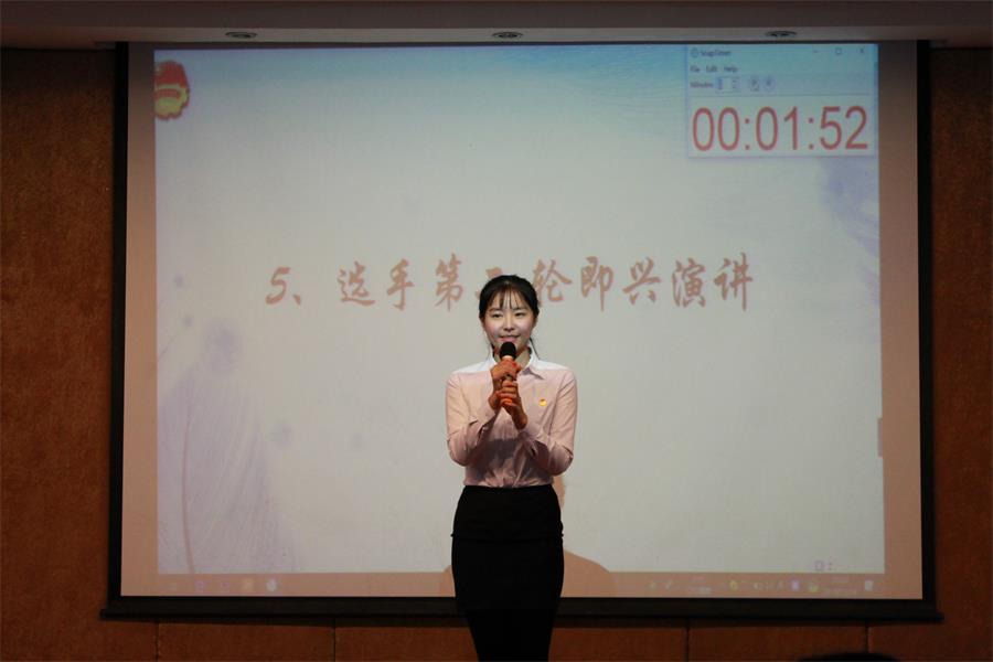 在问答环节中,同学们积极抢答,展现出了同学们对改革开放的热情关注与了解程度。紧接着是第二个环节即兴演讲,一号选手抽到的题目是“锲而不舍,再接再厉”,二号选手抽到的题目是“不忘初心,永不止步”,三号选手抽到的题目是“惟改革进,惟创新者强,惟改革创新者胜”,四号选手抽到的题目是“改革开放契合时代潮流”,五号选手抽到的题目是“自强不息,自我革新”,六号选手抽到的题目是“改革关头勇者胜,气可鼓而不可泄”,都体现了参赛者们对“家事、国事、天下事、事事关心”的热切心情与他们对于改革开放的独特见解。