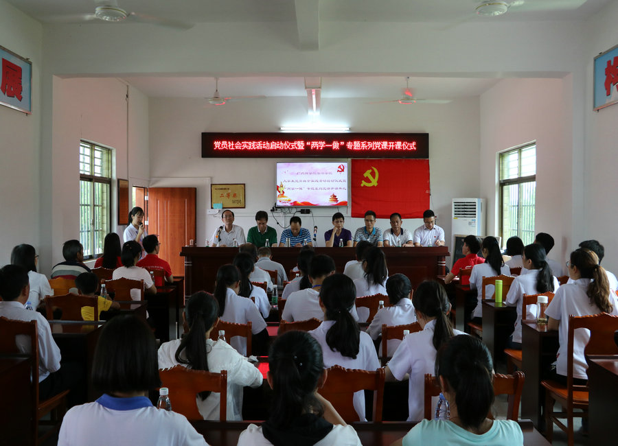为深入学习实践“两学一做”精神,增强政治意识、大局意识、核心意识、看齐意识,加强党性教育。7月15日下午3点于河源市东源县漳溪畲族乡东华村东华小学开展了www.betvlctor1946.com旅游公司党员社会实践活动启动仪式暨“两学一做”学习教育。莅临本次活动的嘉宾有河源市委组织部组织一科彭科长、漳溪畲族乡党委副书记朱其标、漳溪畲族乡副乡长吴建润、www.betvlctor1946.com校团委书记李锦堂、外国语公司党总支书记徐超、旅游公司党总支书记汪椿东、漳溪畲族乡东华村委书记吴剑亮、委员吴铭辉。出席人员有党员社会实践活动指导老师蔡俊发、刘智莹、梁智斌以及新老党员和全体队员。