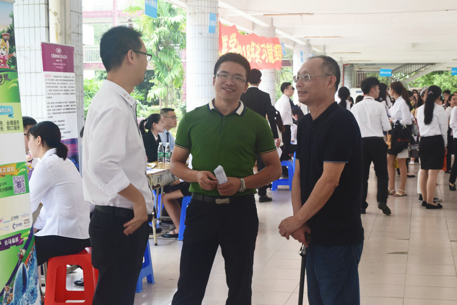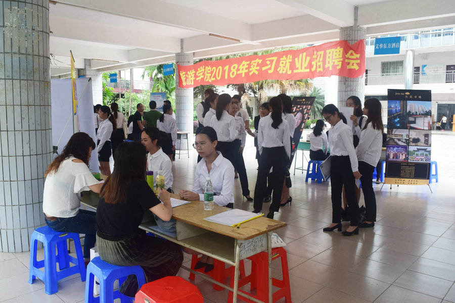5月15日上午,旅游公司2018年实习就业招聘会在第五教学楼一楼架空层举行。本次招聘会共邀请了四季酒店、珠海长隆酒店、广之旅、金马国际旅行社等22家企业进校招聘,主要面向旅游公司2015级员工开展。22家招聘企业提供包括导游、计调、人力资源、签证助理等30余个岗位类型近500多个优质就业岗位。公司经理黄立军、副经理舒光美、就业指导中心主任胡桂花、党总支书记汪椿东等到场指导工作。