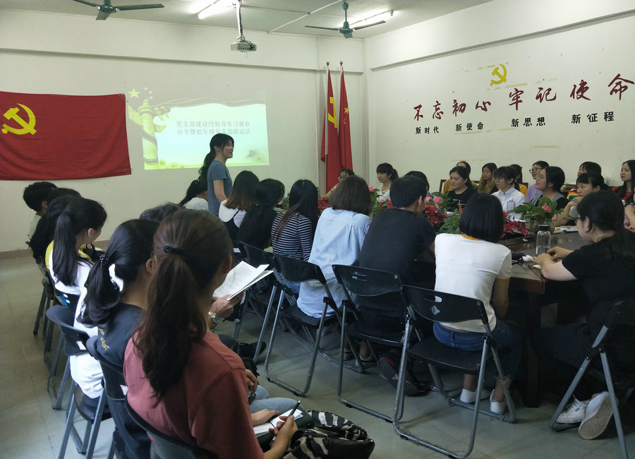 会议第三项议程是实习就业经验分享暨低年级党支部联谊。其中邱曼婷同志提到,在选择行业和岗位的时候,一定要结合自己的兴趣,明确自己的职业规划,不要盲目从众,要做自己想做的事情。