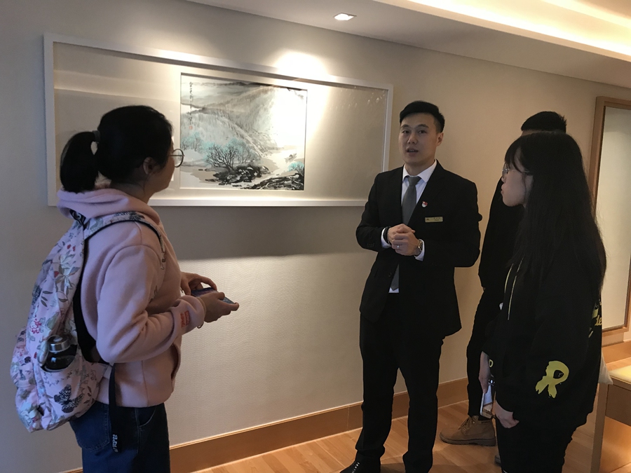 为了开拓员工的视野,培训员工的专业素养,加深员工对酒店行业特别是五星级酒店的认知, 2018年12月20日下午,旅游公司教师倪珊珊、辅导员刘智莹带领2018级酒店管理专业的全体同学到白天鹅宾馆开展见习活动。