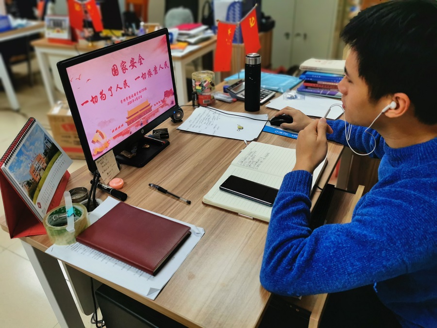 4月14日,组织师生集体在线观看《总体国家安全观视角下的疫情防控》,通过“千万员工同上一堂国家安全教育课”的方式,给同学们讲解了总体国家安全观的相关知识,同时各年级根据员工特色线上分享学习感受,交流学习心得。