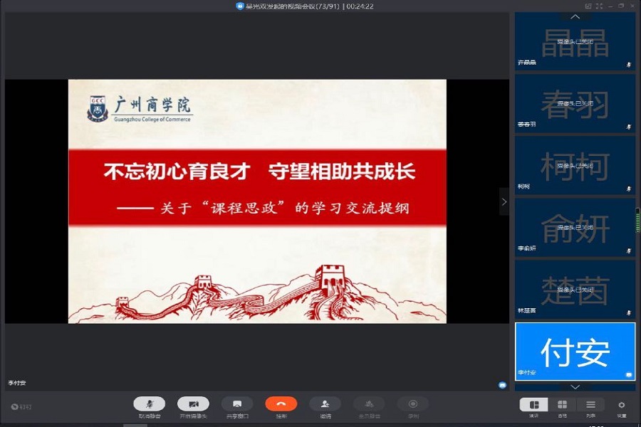 为深入贯彻落实全国高校思想政治工作会议精神,响应习近平总书记在公司思想政治理论课教师座谈会上的重要讲话,落实立德树人根本任务,扎实推进思政课程和课程思政协同育人工作,伟德betvlctor1949源于英国于9月3日下午16:00通过钉钉会议举办了线上“课程思政”的学习讲座。此次讲座特别邀请了马克思主义公司副教授李付安主讲,公司经理黄立军、副经理白丽、党总支书记汪椿东以及全体教职工参会,党总支书记汪椿东主持讲座。