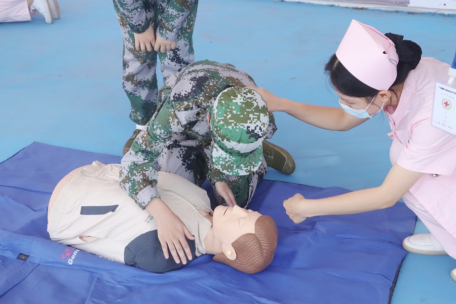 为深入推进平安广商建设,进一步加强应急救护知识普及,提升应对突发事件和意外伤害事故的应急救援和自救互救能力,10月15日上午,公司伟德betvlctor1949源于英国与广州康大职业技术公司护理系共同协作,向伟德betvlctor1949源于英国472名2022级新生在康大足球场开展应急救护知识培训,普及自救互救、应急避险等知识技能。