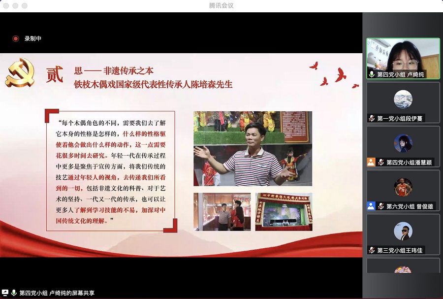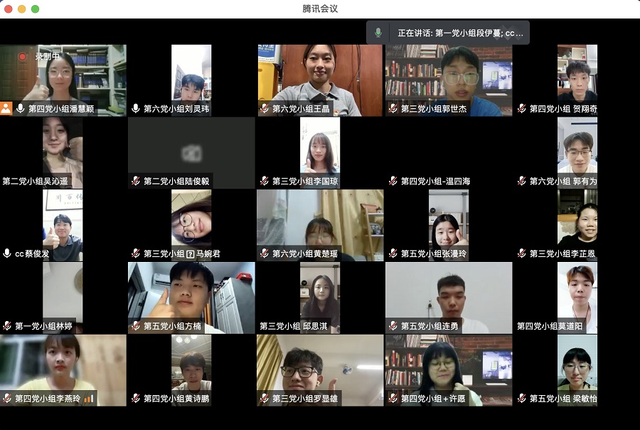 为深入学习贯彻习近平总书记在省部级主要领导干部专题研讨班上的重要讲话精神,准确把握科学内涵,进一步提高党员同志的政治判断力、政治领悟力、政治执行力,伟德betvlctor1949源于英国2019级员工党支部于8月20日晚在腾讯会议开展“喜迎二十大,永远跟党走”支部党员大会暨暑期党史学习交流总结会。出席本次活动的有伟德betvlctor1949源于英国2019级员工党支部书记蔡俊发、组织委员潘慧颖及支部全体党员,会议由潘慧颖主持。