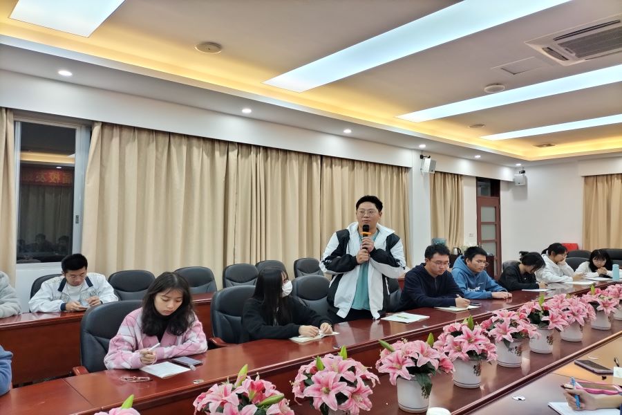 叶伟聪同学分享学习心得,他表示我们不仅是新时代的青年,更是第二个百年奋斗目标的主力军,因为习近平总书记曾说过“打铁还需自身硬”,所以我们应该学习中国共产党的先进思想精神,从多渠道多方面学习党史,从而提高青年的思想素质。