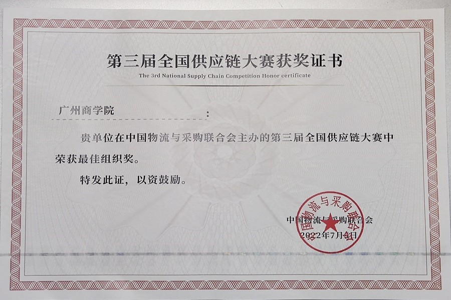 (公司在第三届全国供应链大赛中喜获优秀组织奖荣誉称号)